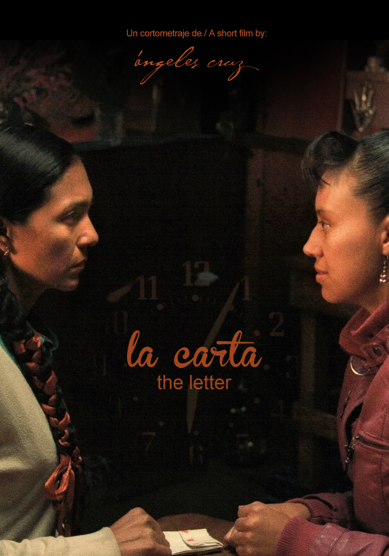 Ha trabajado como actriz muchos años y desde el 2011 escribe y dirige sus propias historias, pues como señala “me doy cuenta que los personajes y los papeles que nos ofrecen están muy acotados, muy racializados y estereotipados, y decido escribir mis propias historias, escribo y dirijo las cosas que yo quiero decir.” Esos relatos están lejos de ser complacientes, Ángeles tiene mucha conciencia de su lugar en lo público y trabaja con temáticas complejas. En el cortometraje La carta, aborda el amor lésbico de mujeres que no se atreven a decirlo en la comunidad por el machismo existente.