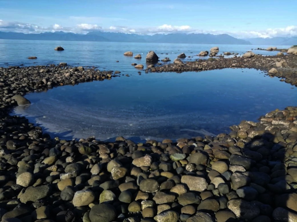 Una de las tantas manifestaciones culturales que se recogen, desde tiempos ancestrales, son prácticas de alimentación que intenté representar en el collage llamado: “corrales de pesca”. Los corrales son de origen tanto Williche como Chono, en ellos se obtienen ciertas similitudes de prácticas y espacios compartidos. Los corrales se ubican mayoritariamente en playas abiertas donde se instalan piedras, en el que la mayoría son rodadas debido a la formación geológica que afecta a la textura con cada roce de las olas del agua salada; se posicionan una contra otra para estructurar un círculo que tendrá una abertura principal mirando hacia el mar abierto. La función de esta expresión cultural marítima es poder sacar una gran cantidad de pescados del mar sin herramientas modernas que hoy se conocen como los anzuelos, cañas, entre otros. Así, en el proceso de flujo y de reflujo de las mareas, muchos peces quedaban atrapados dentro de los corrales entre las piedras y los charcos.
